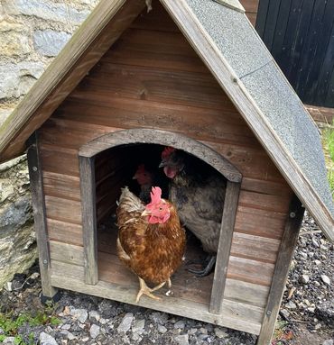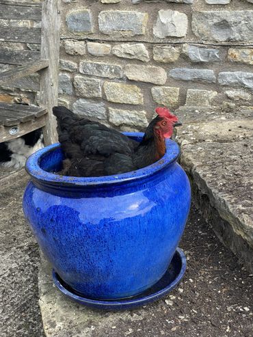 They supply us with a mix of brown or blue eggs, sometimes laid in the flower beds or under a bush, although fortunately they do often choose the hen coop.